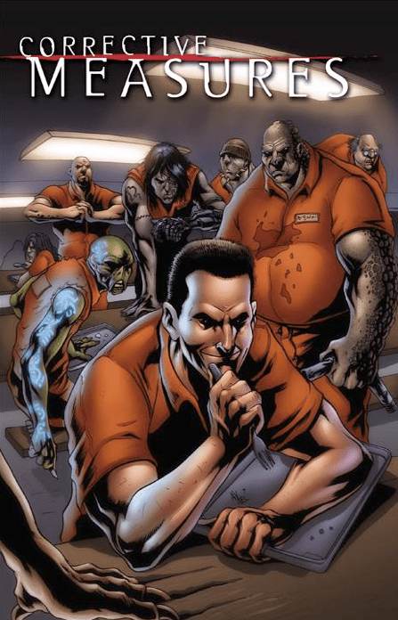 “This is an idea I had going back for a long while now. Corrective Measures started out as the germ of an idea back in 2003, and kind of spiraled out of control as I discovered at that time there were very few books that had a good ongoing prison motif. Sure, every so often The Punisher or Nightwing would find themselves at Riker’s or Bludhaven Correctional… but I wanted to tell a different story. I looked at it from the perspective of the guys that would find themselves doing that job, and how hard it would be to kind of live this moral life when constantly surrounded by these powerfully immoral prisoners. And that’s pretty much the heart of Corrective Measures — the idea that good people have to do bad things to prevent even worse things from occurring.
